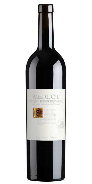 Le MERLOT est le cépage le plus cultivé dans le Bordelais, le vignoble italien du nord-est et dans le canton du Tessin. Depuis quelques années le Merlot est beaucoup cultivé en Valais. Son parchet de prédilection "Les Bernunes" près de Sierre, confère au Merlot une maturité parfaite.Ce vin se caractérise par une couleur rouge foncé et une complexité aromatique extravagante rappelant les pruneaux et les griottes. La vinification en barriques lui amène une belle structure tanique.