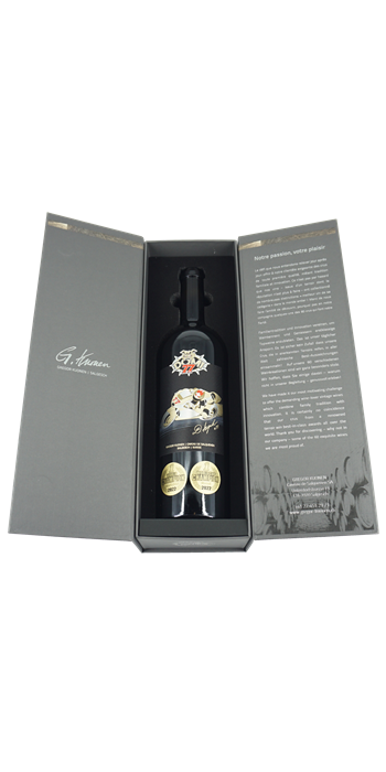 Ce cru noble se présente en bouteille individuelle dans un emballage cadeau exclusif ou, sur demande, dans une belle caisse en bois de 6 bouteilles, ce qui en fait un cadeau idéal.